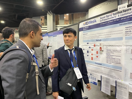 At IDWeek 2025, held in Atlanta, Georgia, USA, from October 19-22, 2025, Dr. Nguyen Hoa Anh representing LiveSpo Pharma and Assoc. Prof. Dr. Nguyen Thi Van Anh representing the Spobiotic Research Center – ANABIO R&D, presented new research findings on the effectiveness of nasal-spray Bacillus spores in preventing respiratory infections in children. This study is part of a collaborative effort among the Institute for Preventive Medicine and Public Health – Hanoi Medical University, Hanoi University of Public Health, and several other research institutions.